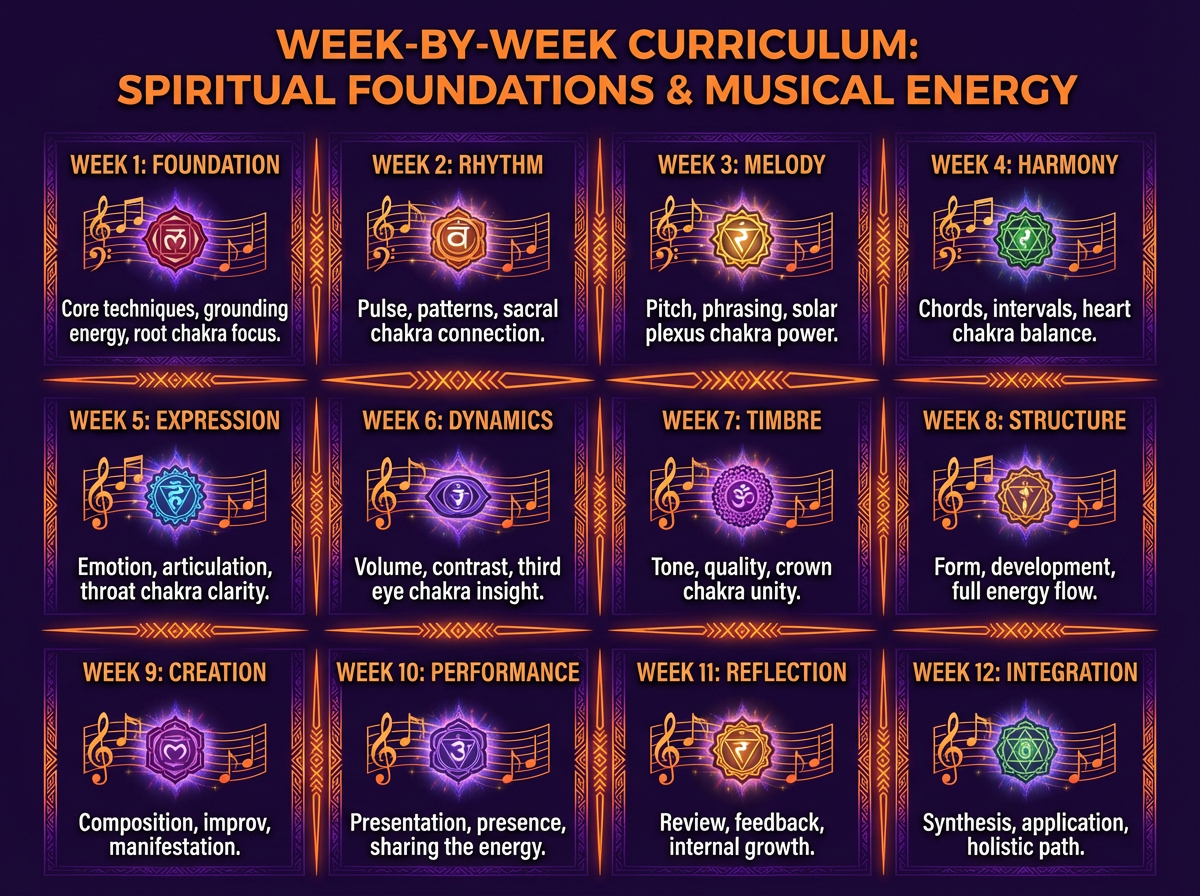 A structured 12-week program designed to build both musical mastery and inner wisdom.